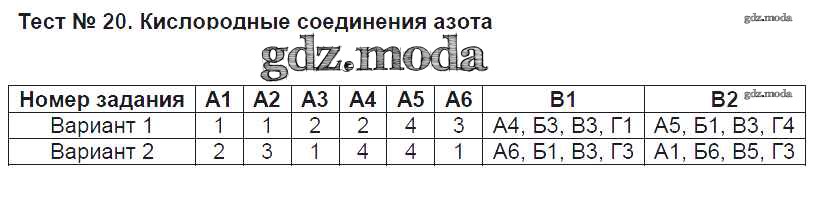 ОТВЕТ на задание № Тест №20. Кислородные соединения азота Контрольно-измерительные материалы (КИМ) по Химии 9 класс Стрельникова