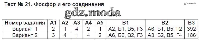 ГДЗ решение к заданию № Тест №21. Фосфор и его соединения Химия 9 класс контрольно-измерительные материалы Стрельникова Е.Н. ВАКО 2017 ФГОС бесплатно на гдз.мода!