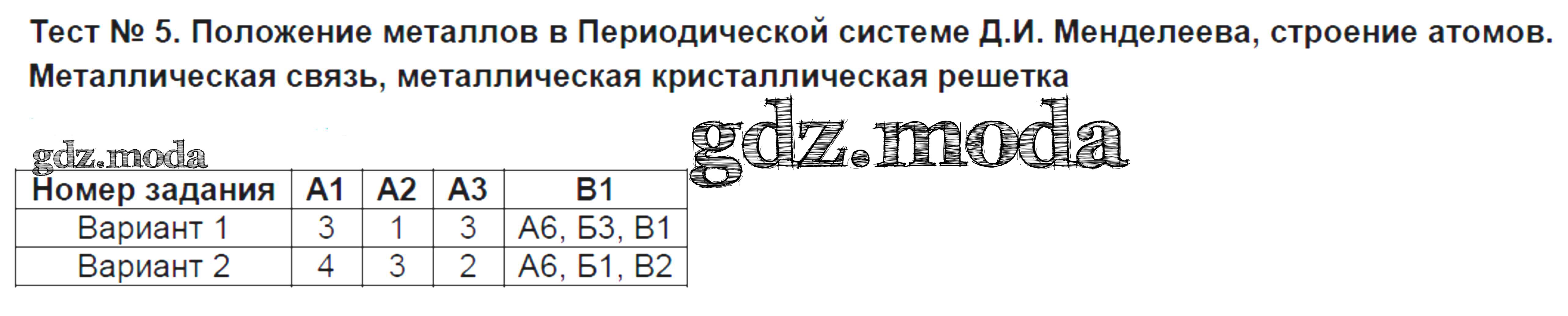 ОТВЕТ на задание № Тест №5. Положение металлов в Периодической системе Д.И. Менделеева, строение атомов Контрольно-измерительные материалы (КИМ) по Химии 9 класс Стрельникова
