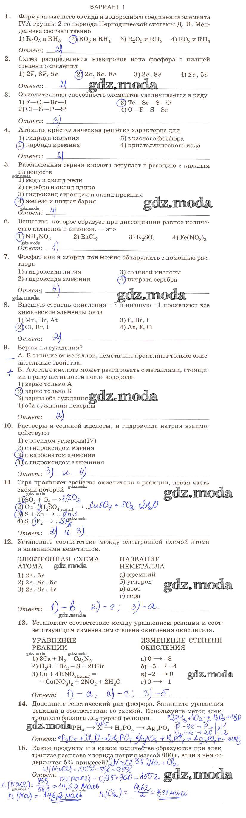 ГДЗ решение к заданию № вариант-1 Химия 9 класс контрольные работы Габриелян О.С. (к уч. Габриеляна) Дрофа 2013 ФГОС бесплатно на гдз.мода!