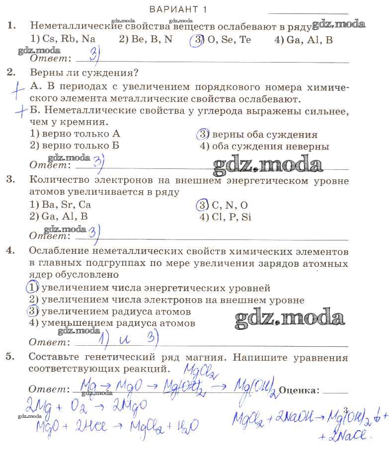 ГДЗ решение к заданию № вариант-1 Химия 9 класс контрольные работы Габриелян О.С. (к уч. Габриеляна) Дрофа 2013 ФГОС бесплатно на гдз.мода!