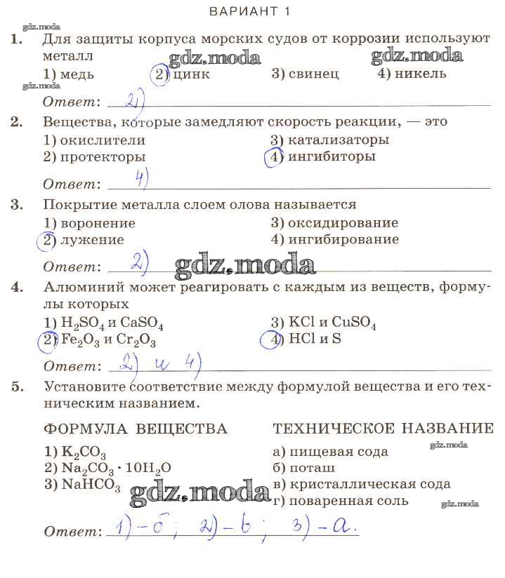 ГДЗ решение к заданию № вариант-1 Химия 9 класс контрольные работы Габриелян О.С. (к уч. Габриеляна) Дрофа 2013 ФГОС бесплатно на гдз.мода!