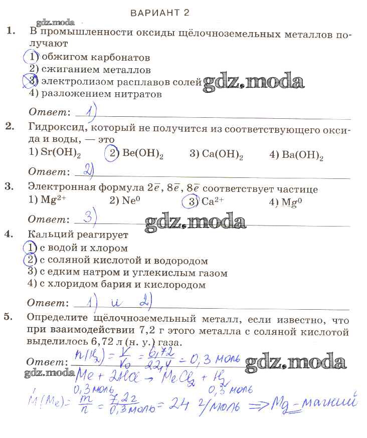 ГДЗ решение к заданию № вариант-2 Химия 9 класс контрольные работы Габриелян О.С. (к уч. Габриеляна) Дрофа 2013 ФГОС бесплатно на гдз.мода!