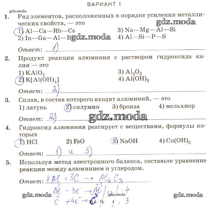 ГДЗ решение к заданию № вариант-1 Химия 9 класс контрольные работы Габриелян О.С. (к уч. Габриеляна) Дрофа 2013 ФГОС бесплатно на гдз.мода!