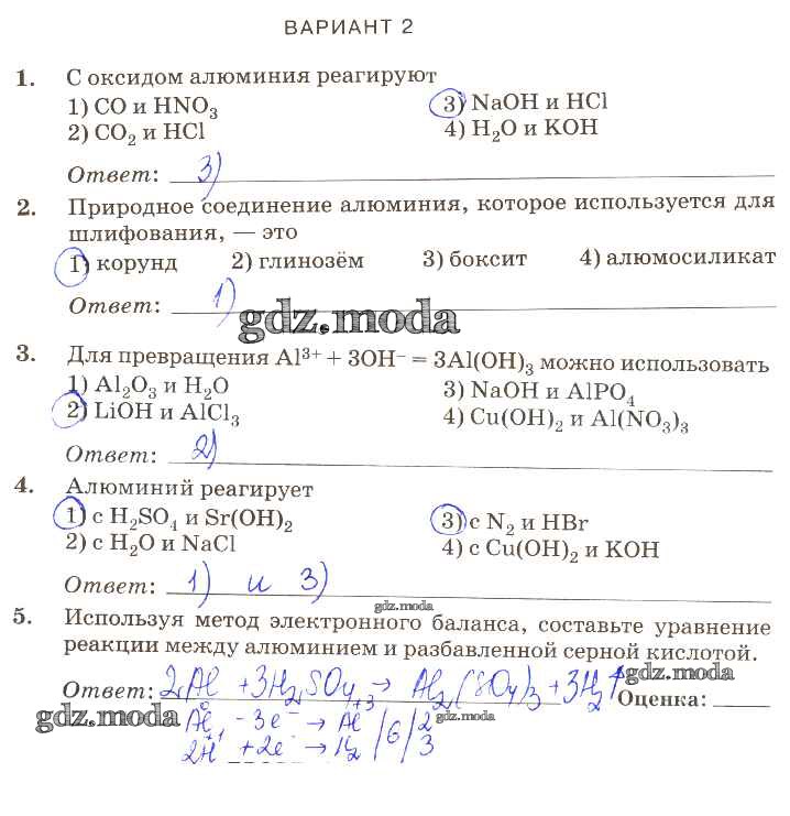 ГДЗ решение к заданию № вариант-2 Химия 9 класс контрольные работы Габриелян О.С. (к уч. Габриеляна) Дрофа 2013 ФГОС бесплатно на гдз.мода!
