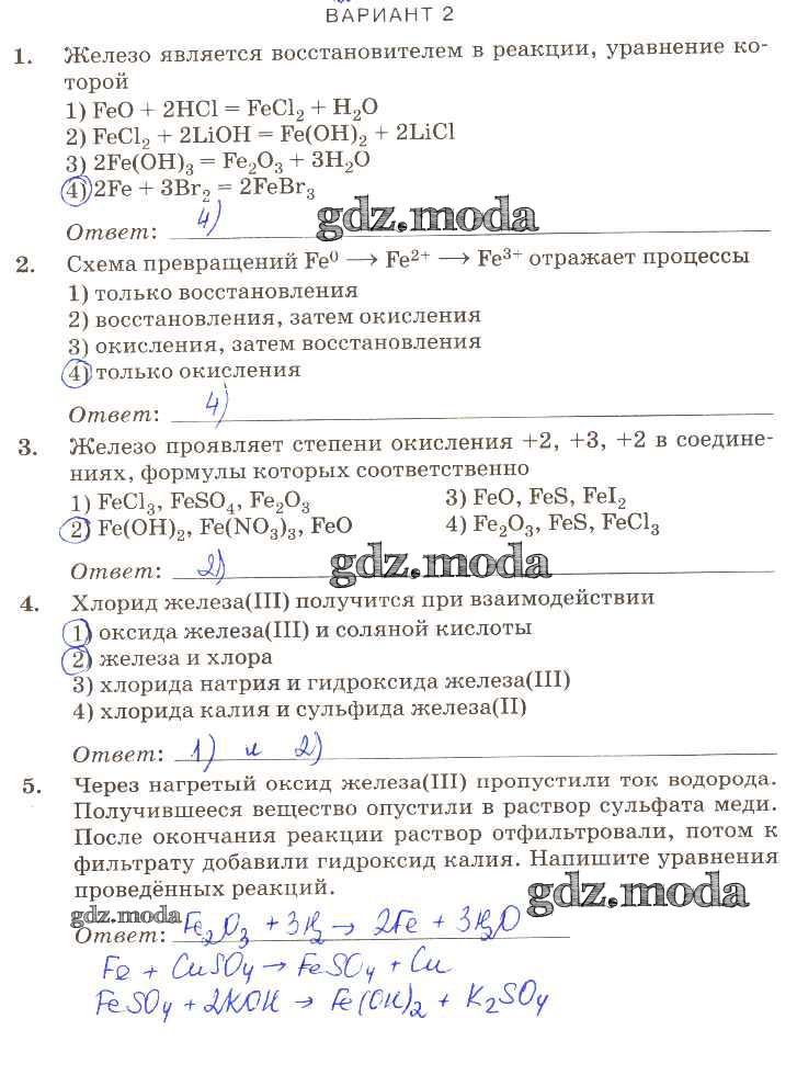 ГДЗ решение к заданию № вариант-2 Химия 9 класс контрольные работы Габриелян О.С. (к уч. Габриеляна) Дрофа 2013 ФГОС бесплатно на гдз.мода!