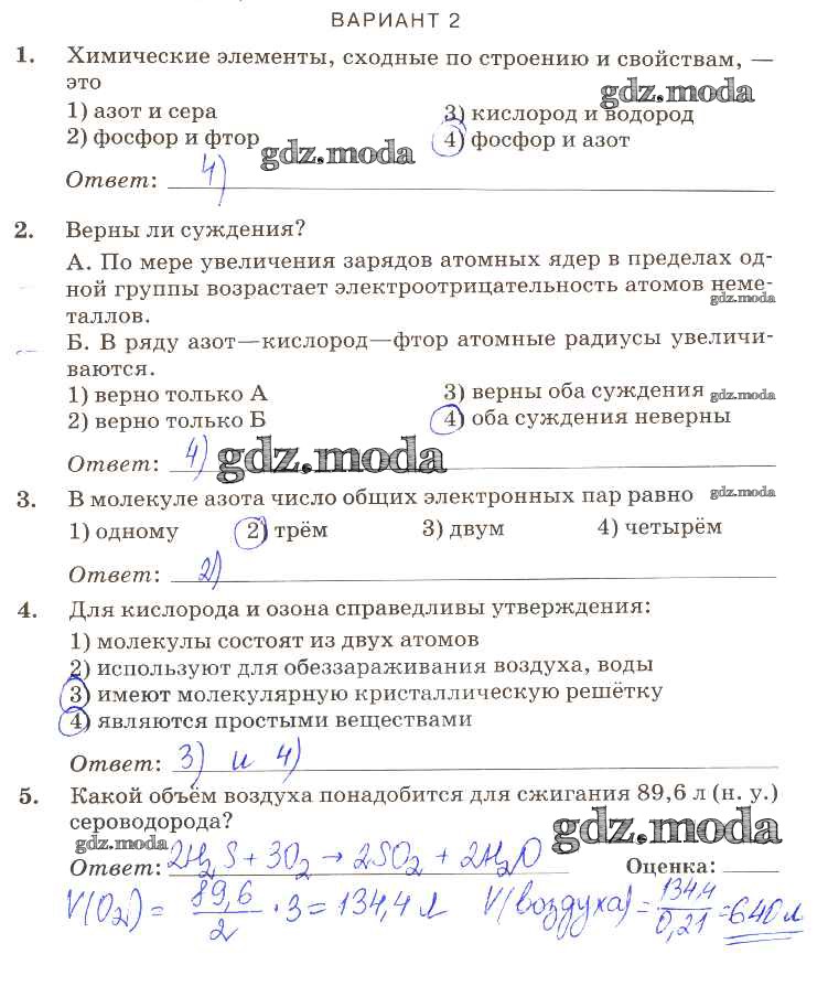 ГДЗ решение к заданию № вариант-2 Химия 9 класс контрольные работы Габриелян О.С. (к уч. Габриеляна) Дрофа 2013 ФГОС бесплатно на гдз.мода!