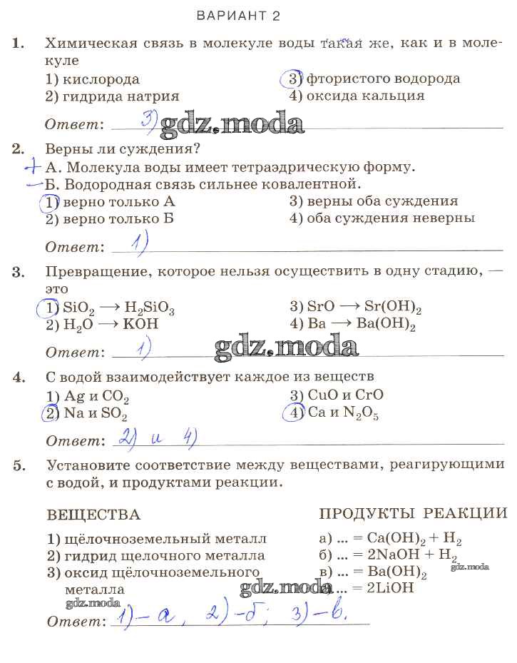 ГДЗ решение к заданию № вариант-2 Химия 9 класс контрольные работы Габриелян О.С. (к уч. Габриеляна) Дрофа 2013 ФГОС бесплатно на гдз.мода!