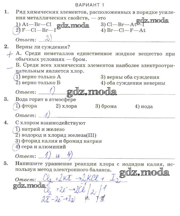 ГДЗ решение к заданию № вариант-1 Химия 9 класс контрольные работы Габриелян О.С. (к уч. Габриеляна) Дрофа 2013 ФГОС бесплатно на гдз.мода!