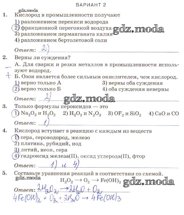 ГДЗ решение к заданию № вариант-2 Химия 9 класс контрольные работы Габриелян О.С. (к уч. Габриеляна) Дрофа 2013 ФГОС бесплатно на гдз.мода!