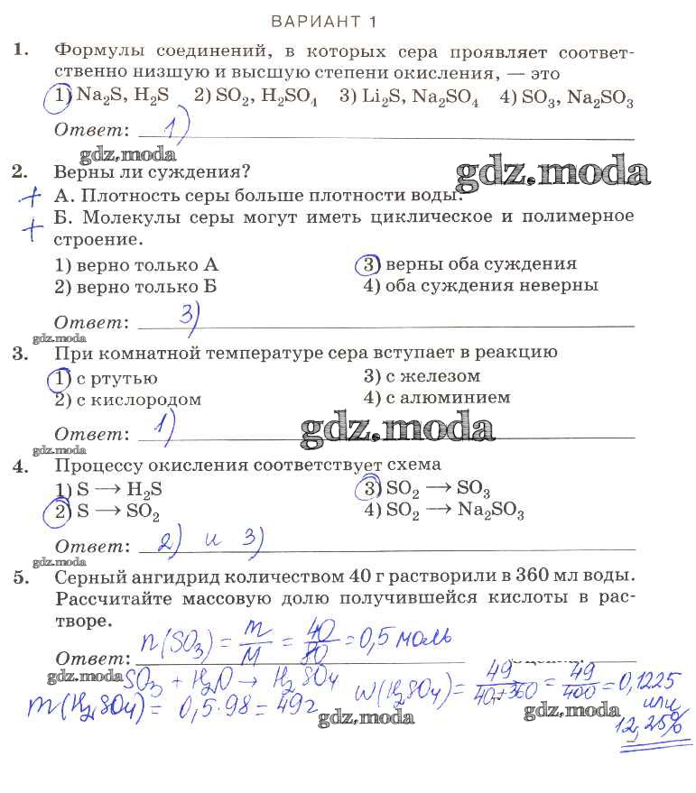 ГДЗ решение к заданию № вариант-1 Химия 9 класс контрольные работы Габриелян О.С. (к уч. Габриеляна) Дрофа 2013 ФГОС бесплатно на гдз.мода!