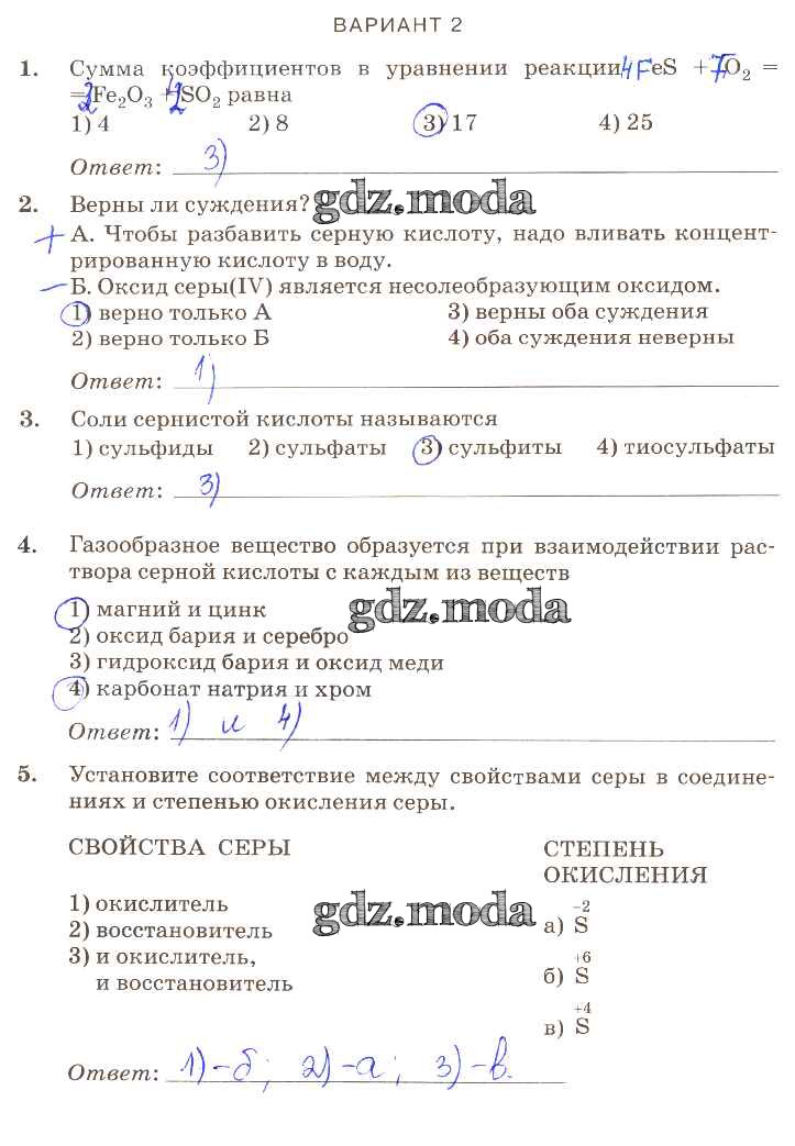 ГДЗ решение к заданию № вариант-2 Химия 9 класс контрольные работы Габриелян О.С. (к уч. Габриеляна) Дрофа 2013 ФГОС бесплатно на гдз.мода!