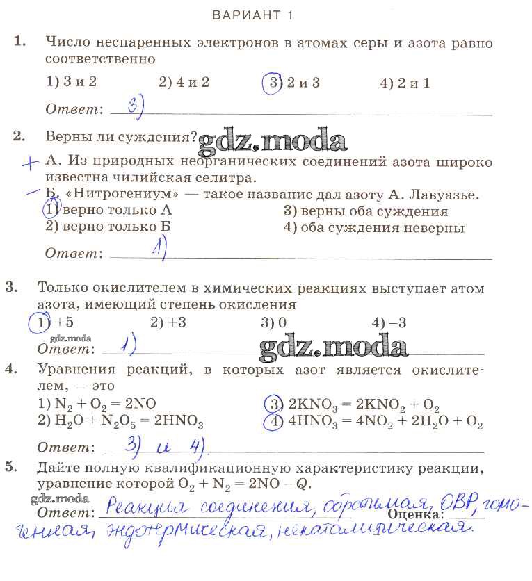 ГДЗ решение к заданию № вариант-1 Химия 9 класс контрольные работы Габриелян О.С. (к уч. Габриеляна) Дрофа 2013 ФГОС бесплатно на гдз.мода!