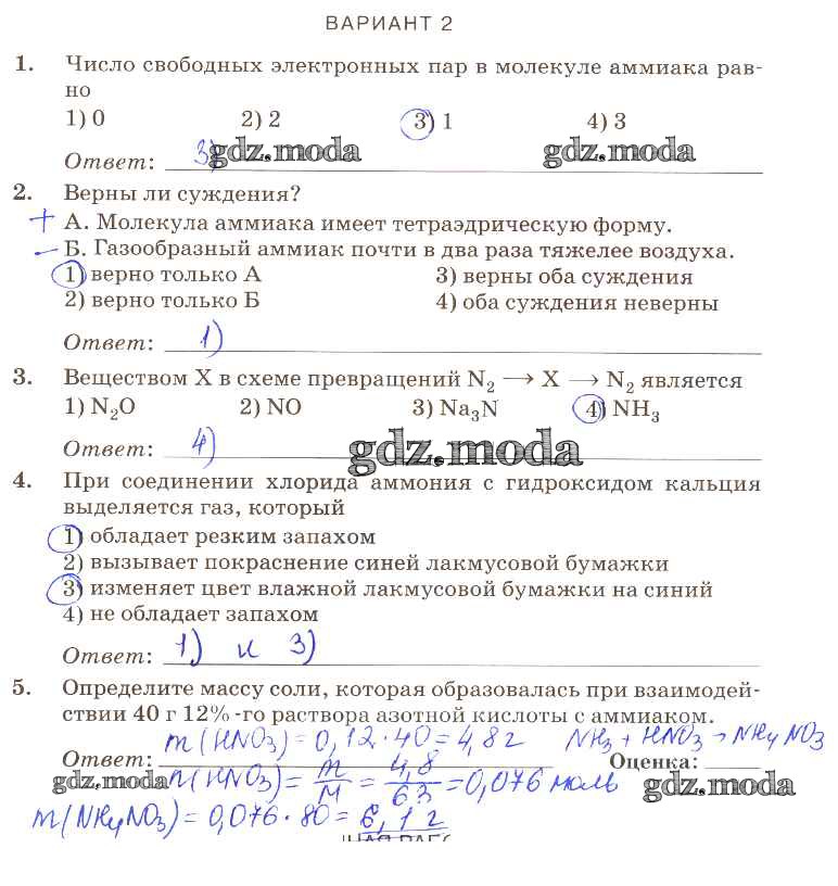 ГДЗ решение к заданию № вариант-2 Химия 9 класс контрольные работы Габриелян О.С. (к уч. Габриеляна) Дрофа 2013 ФГОС бесплатно на гдз.мода!