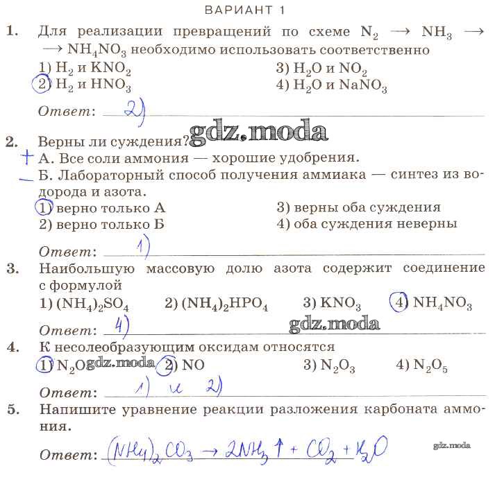 ГДЗ решение к заданию № вариант-1 Химия 9 класс контрольные работы Габриелян О.С. (к уч. Габриеляна) Дрофа 2013 ФГОС бесплатно на гдз.мода!