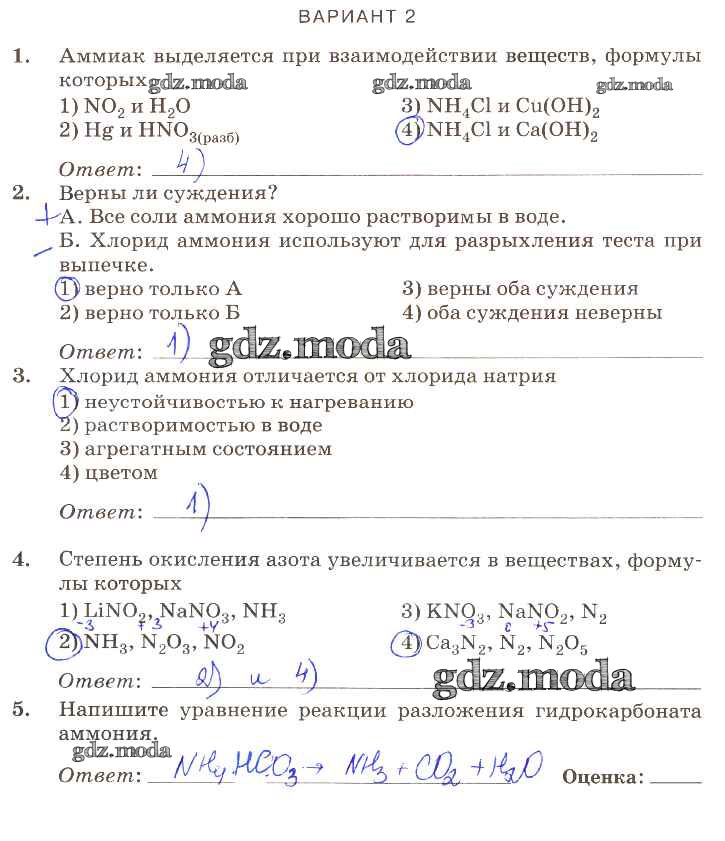 ГДЗ решение к заданию № вариант-2 Химия 9 класс контрольные работы Габриелян О.С. (к уч. Габриеляна) Дрофа 2013 ФГОС бесплатно на гдз.мода!