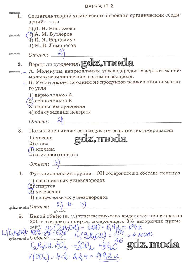 ГДЗ решение к заданию № вариант-2 Химия 9 класс контрольные работы Габриелян О.С. (к уч. Габриеляна) Дрофа 2013 ФГОС бесплатно на гдз.мода!
