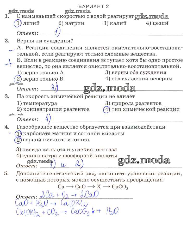 ГДЗ решение к заданию № вариант-2 Химия 9 класс контрольные работы Габриелян О.С. (к уч. Габриеляна) Дрофа 2013 ФГОС бесплатно на гдз.мода!