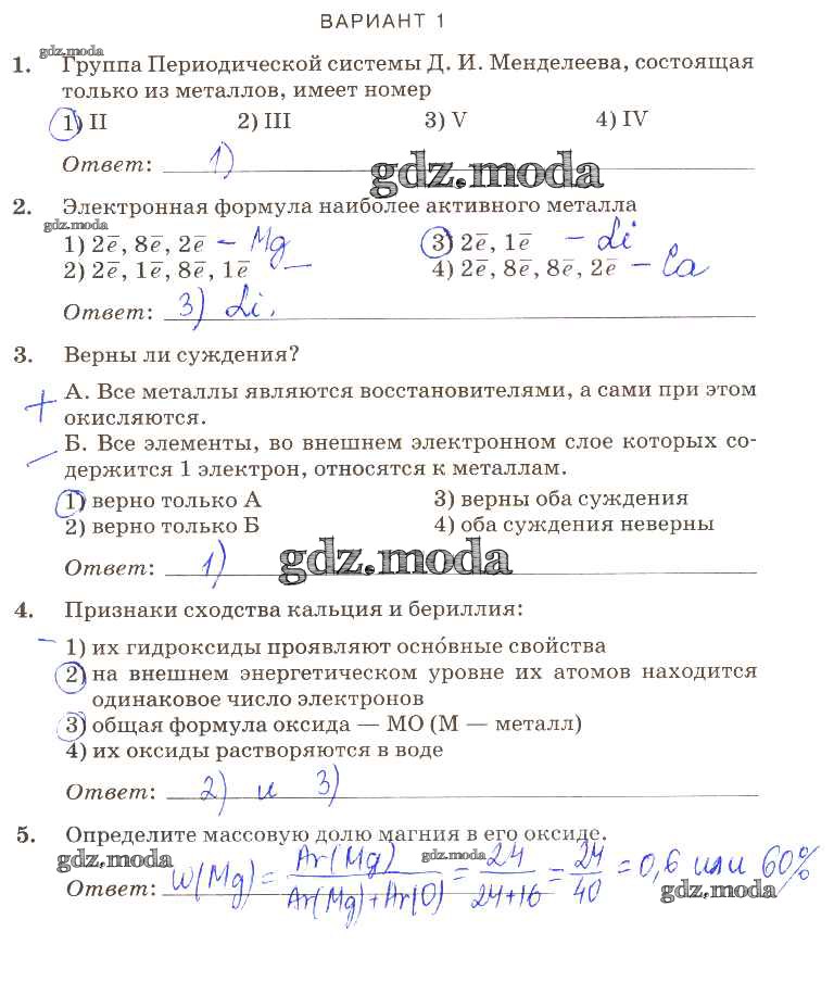 ГДЗ решение к заданию № вариант-1 Химия 9 класс контрольные работы Габриелян О.С. (к уч. Габриеляна) Дрофа 2013 ФГОС бесплатно на гдз.мода!