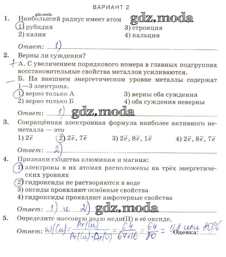 ГДЗ решение к заданию № вариант-2 Химия 9 класс контрольные работы Габриелян О.С. (к уч. Габриеляна) Дрофа 2013 ФГОС бесплатно на гдз.мода!