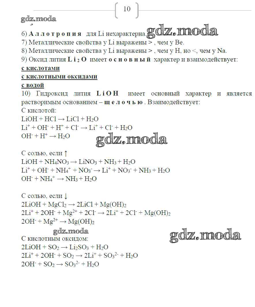 ГДЗ решение к заданию № 10 Химия 9 класс рабочая тетрадь Габриелян О.С. (к уч. Габриеляна) Дрофа 2014 ФГОС бесплатно на гдз.мода!
