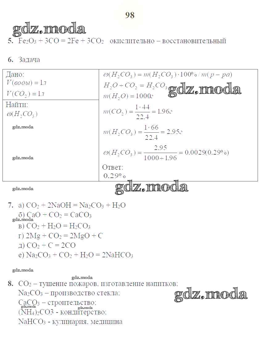 урок 38. Кислородные соединения углерода / стр.98