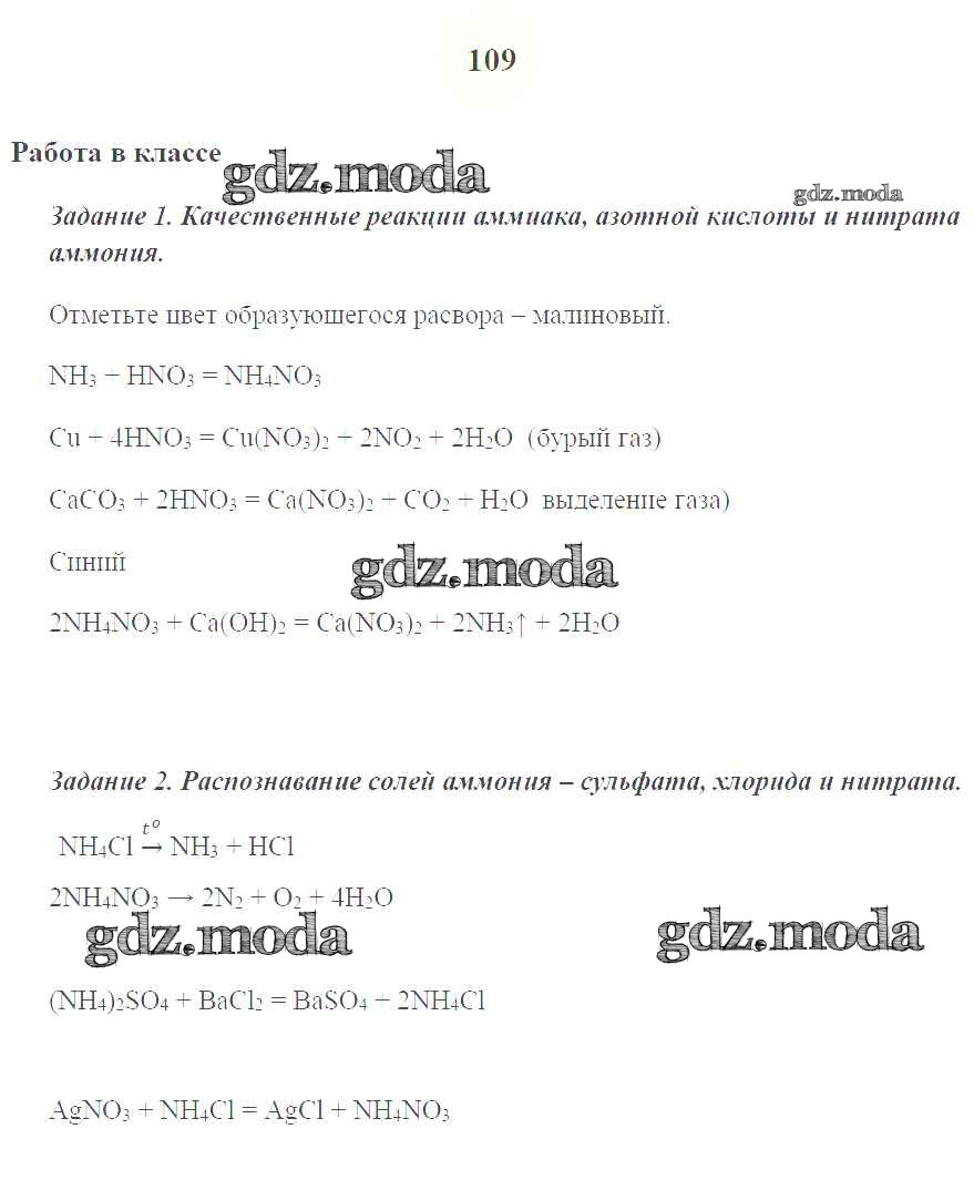 ОТВЕТ на задание № стр.109 Рабочая тетрадь по Химии 9 класс Микитюк УМК