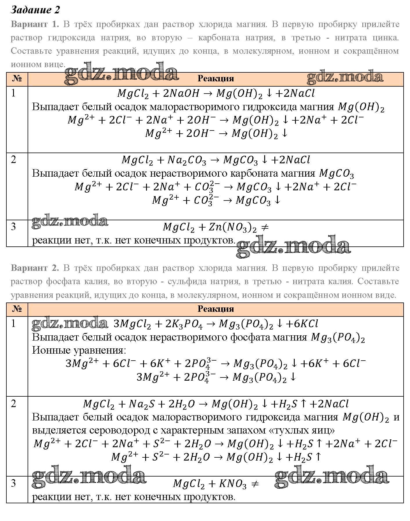 ОТВЕТ на задание № задание №2 Учебник по Химии 9 класс Рудзитис УМК