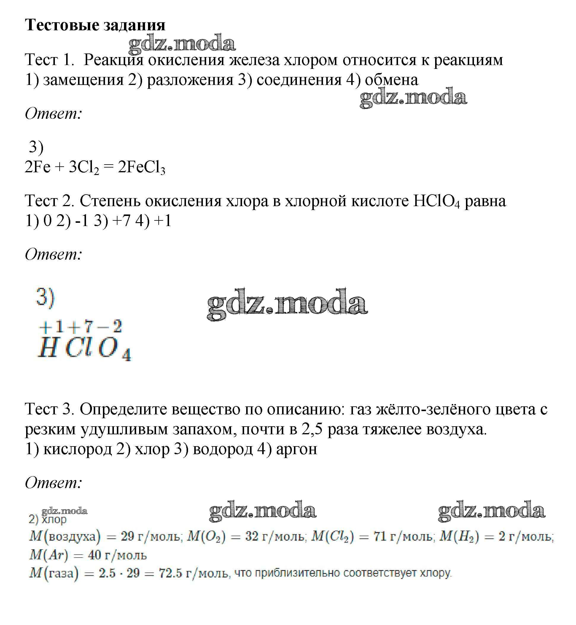 ОТВЕТ на задание № тестовое задание Учебник по Химии 9 класс Рудзитис УМК