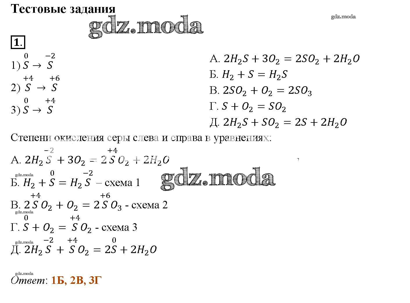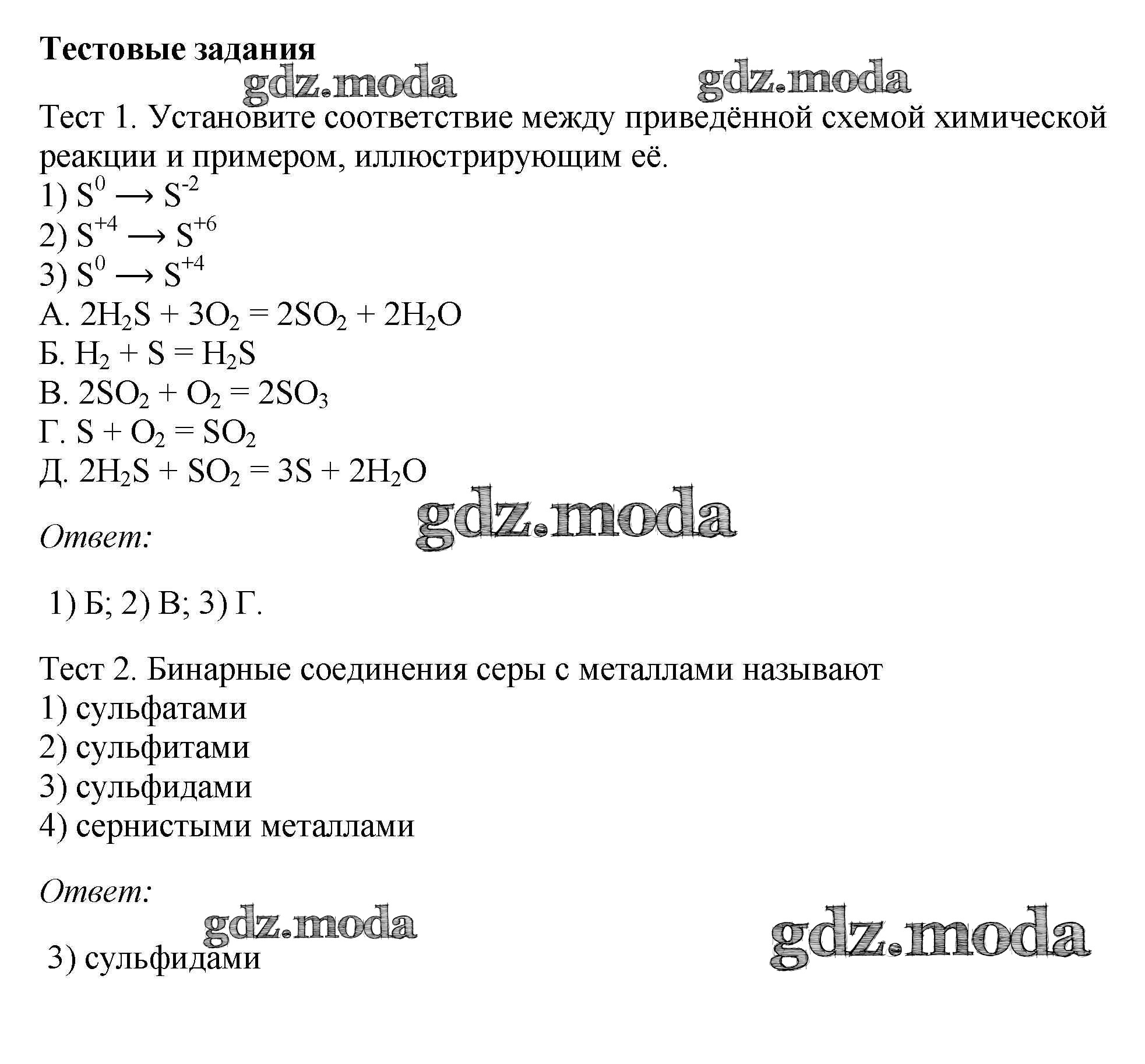 новое издание / § 18. Свойства и применения серы / тестовое задание