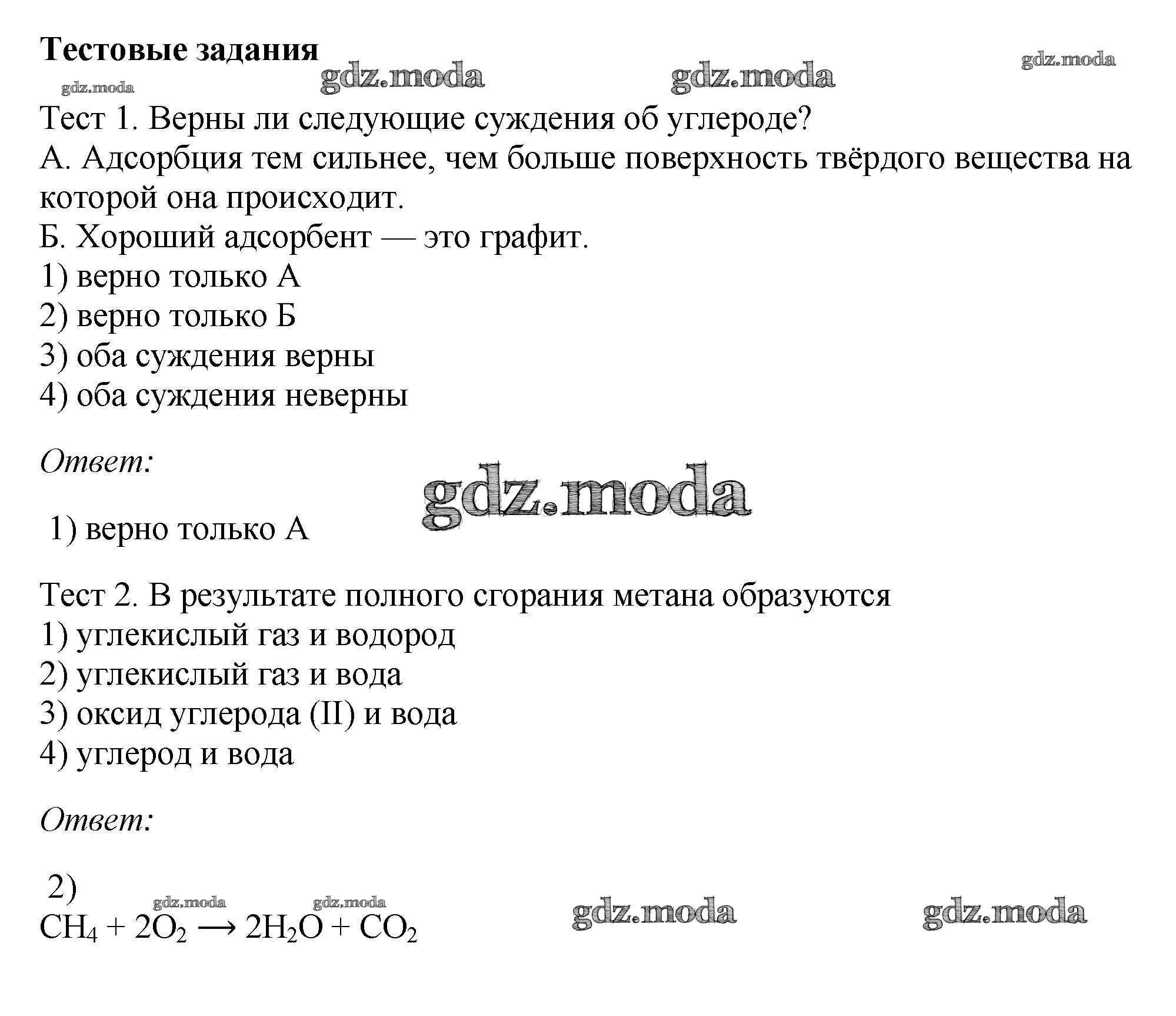новое издание / § 32. Химические свойства углерода. Адсорбция / тестовое задание