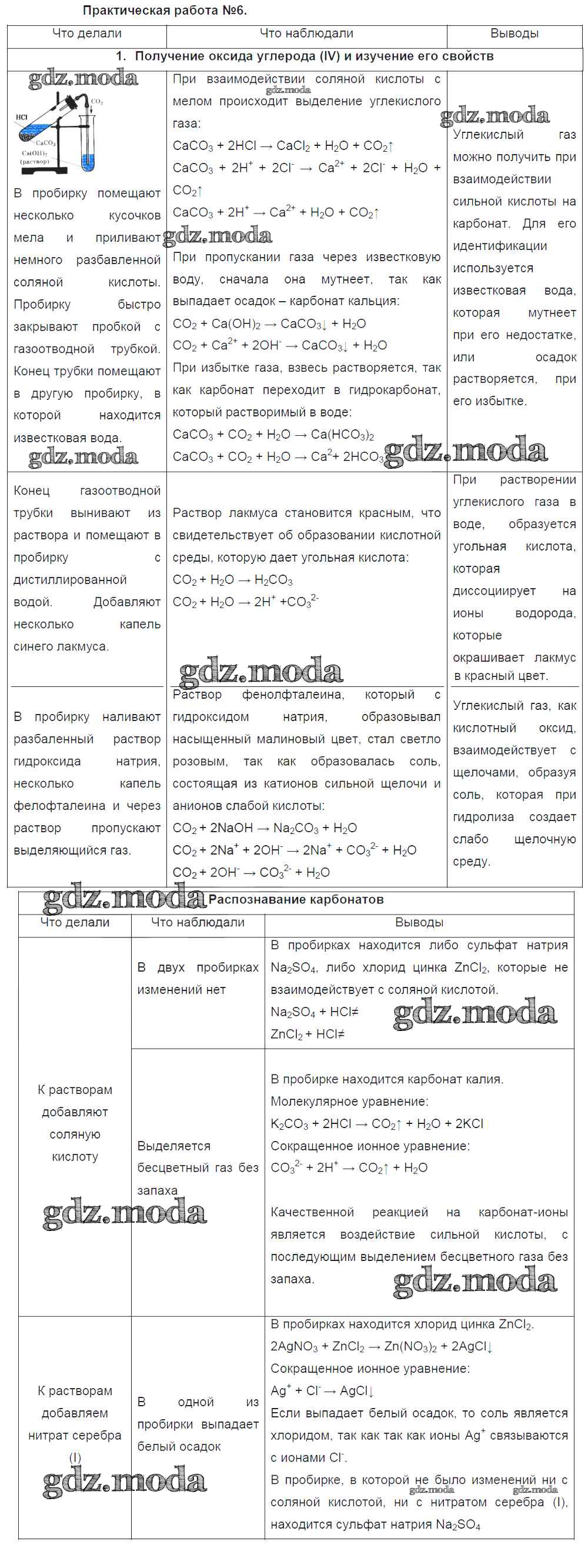 ОТВЕТ на задание № ПР-6 Учебник по Химии 9 класс Рудзитис УМК