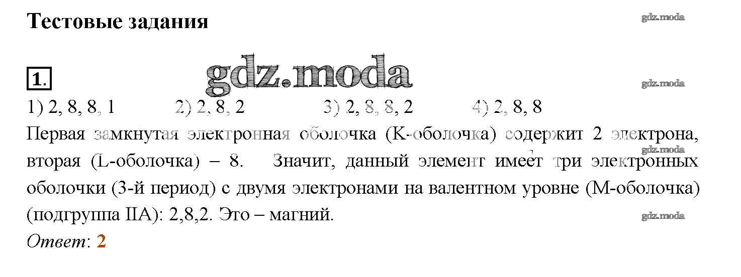 ОТВЕТ на задание № тестовое задание Учебник по Химии 9 класс Рудзитис УМК