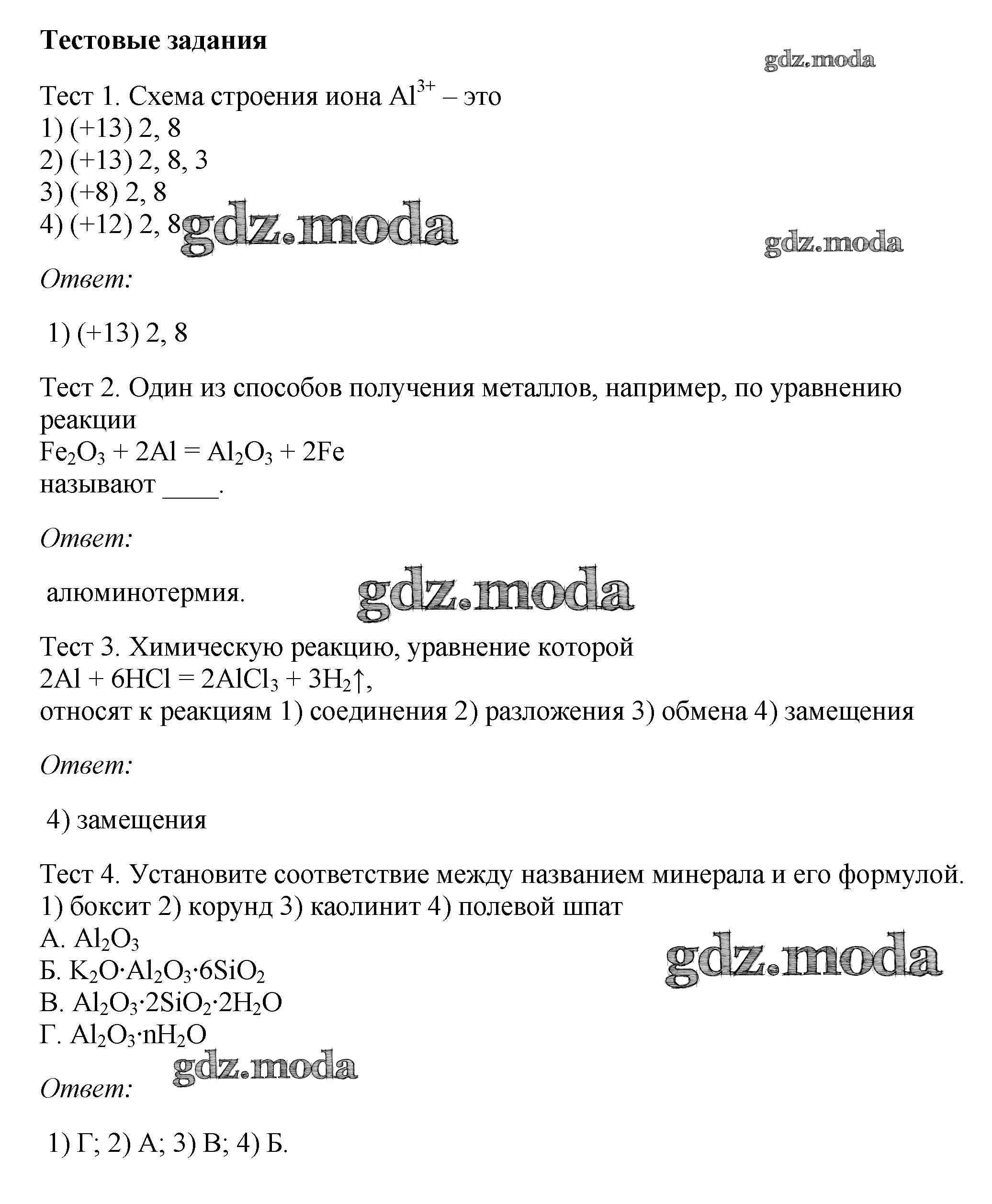 ОТВЕТ на задание № тестовое задание Учебник по Химии 9 класс Рудзитис УМК