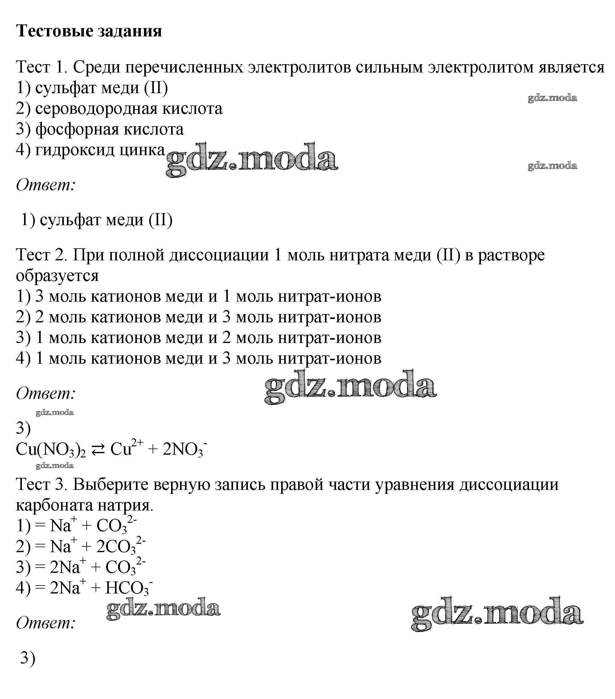 новое издание / § 8. Слабые и сильные электролиты. Степень диссоциаций / тестовое задание