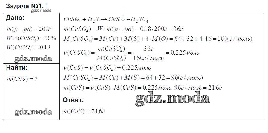 ГДЗ решение к заданию № задача №1 Химия 9 класс Рудзитис Г.Е. Просвещение 2016 ФГОС бесплатно на гдз.мода!
