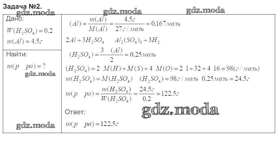 ГДЗ решение к заданию № задача №2 Химия 9 класс Рудзитис Г.Е. Просвещение 2016 ФГОС бесплатно на гдз.мода!