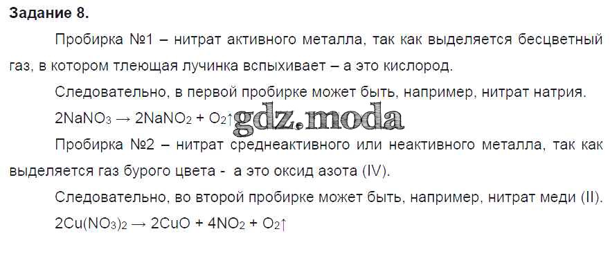 ОТВЕТ на задание № 8 Учебник по Химии 9 класс Рудзитис УМК