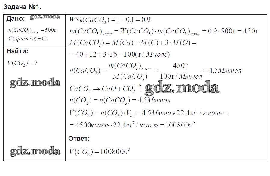 ОТВЕТ на задание № задача №1 Учебник по Химии 9 класс Рудзитис УМК