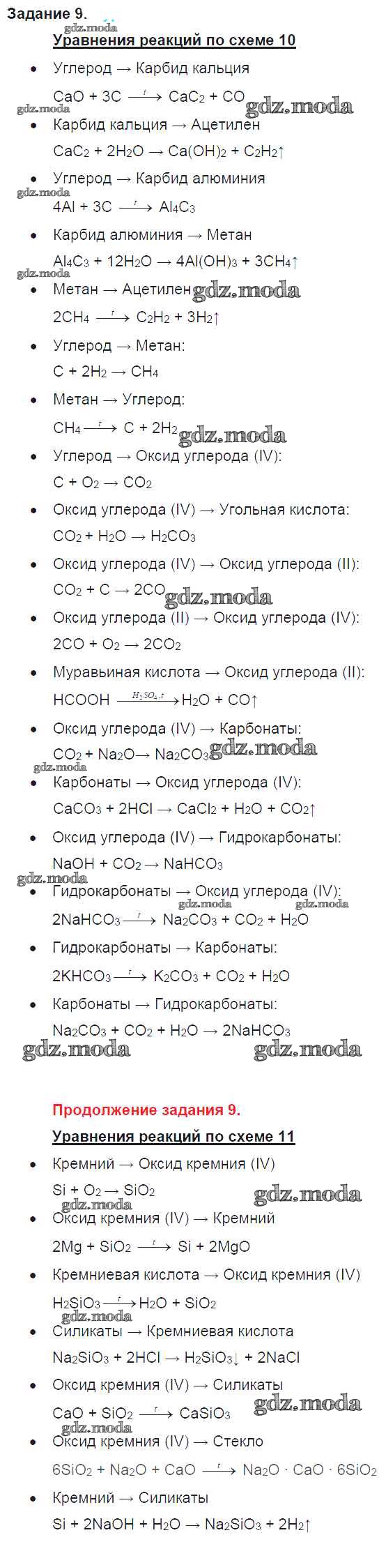 ГДЗ решение к заданию № 9 Химия 9 класс Рудзитис Г.Е. Просвещение 2016 ФГОС бесплатно на гдз.мода!