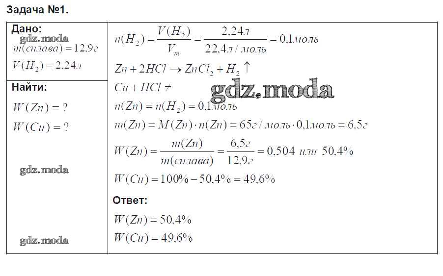 ОТВЕТ на задание № задача №1 Учебник по Химии 9 класс Рудзитис УМК
