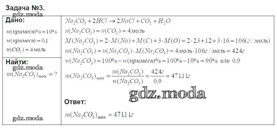 ОТВЕТ на задание № задача №3 Учебник по Химии 9 класс Рудзитис УМК