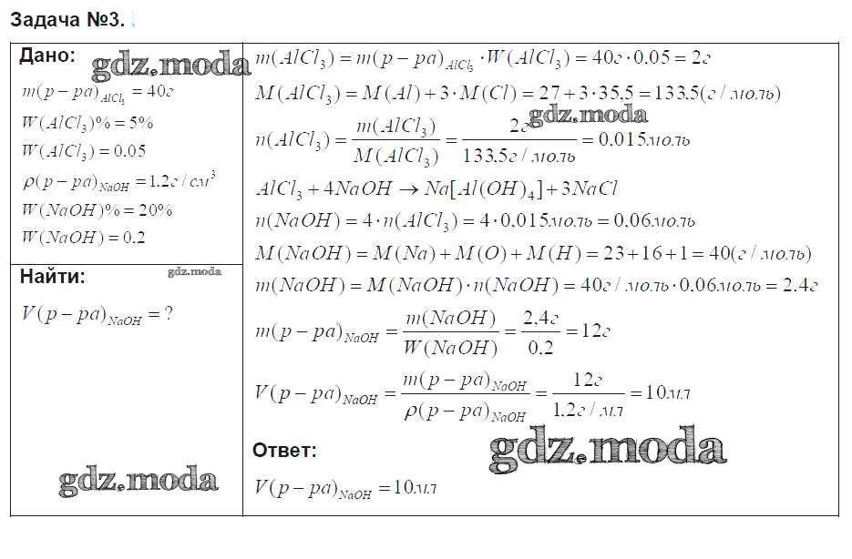 ОТВЕТ на задание № задача №3 Учебник по Химии 9 класс Рудзитис УМК