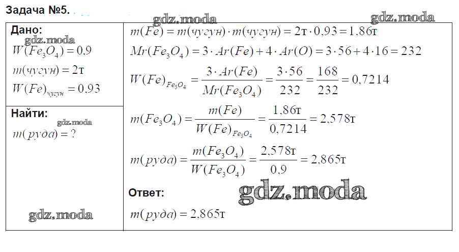 ОТВЕТ на задание № задача №5 Учебник по Химии 9 класс Рудзитис УМК