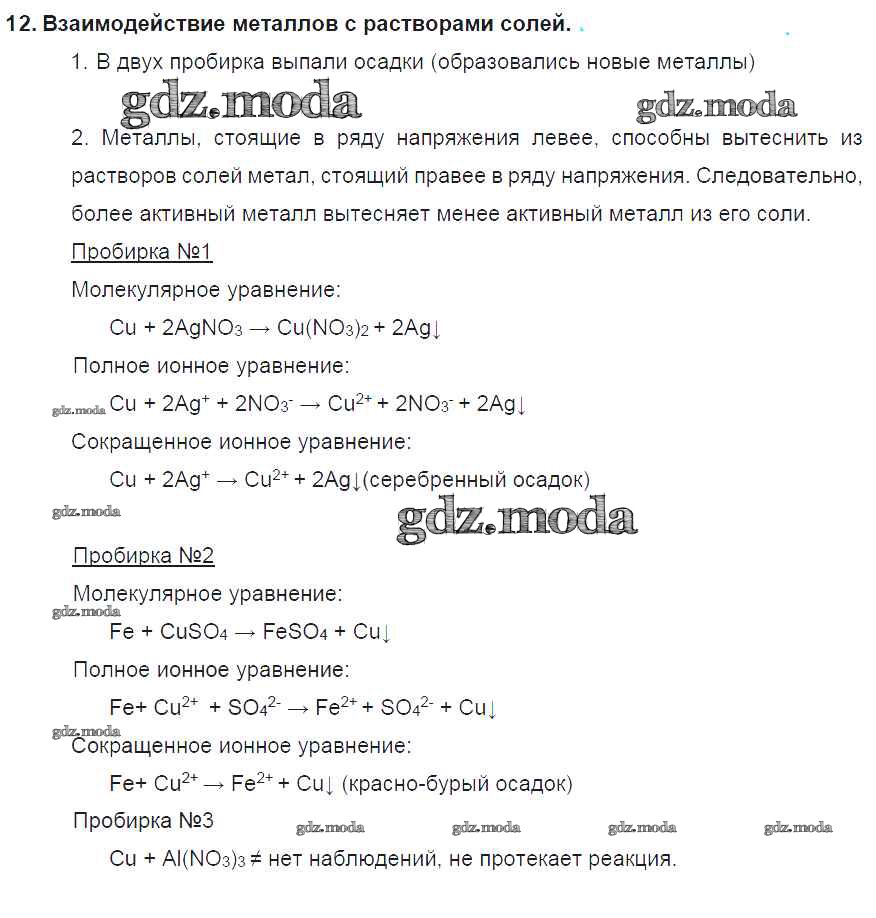 ОТВЕТ на задание № 12 Учебник по Химии 9 класс Рудзитис УМК