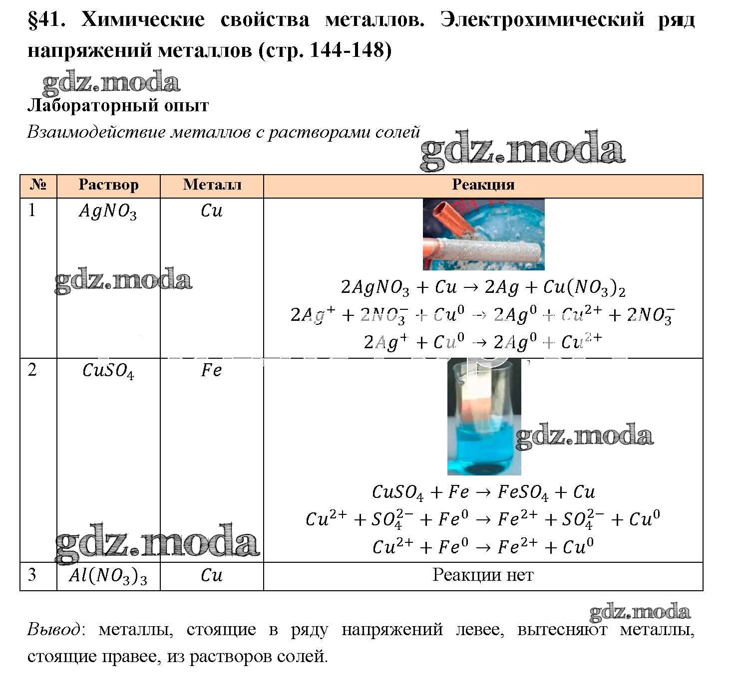 новое издание / § 41. Химические свойства металлов. Электрохимический ряд напряжения металлов / лабораторный опыт