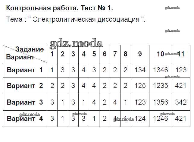 ОТВЕТ на задание № КР-1. Электролитическая диссоциация Тесты по Химии 9 класс Боровских УМК