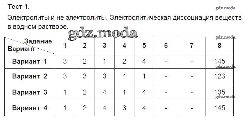 ОТВЕТ на задание № Тест-1. Электролиты и не электролиты Тесты по Химии 9 класс Боровских УМК