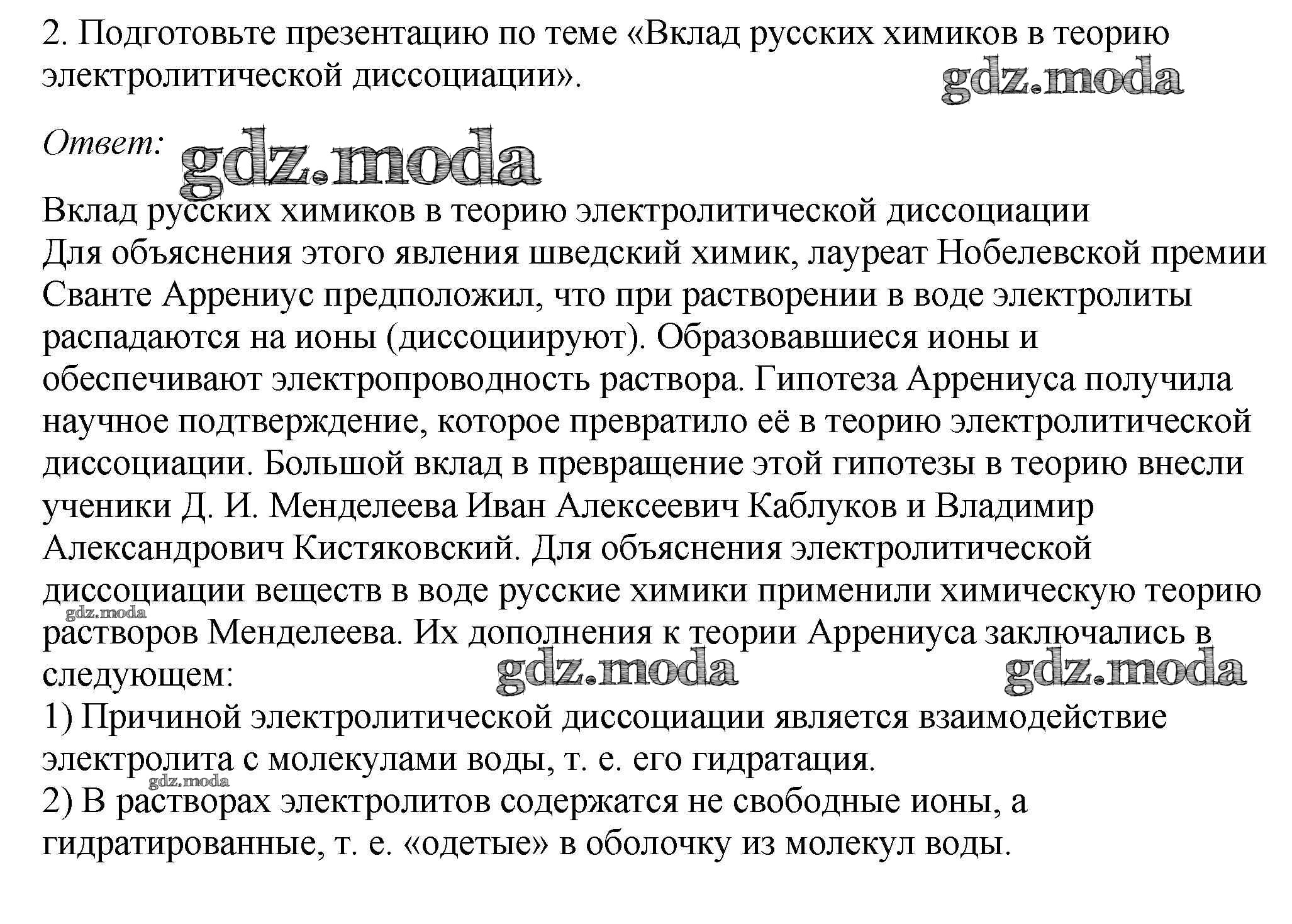 ОТВЕТ на задание № 2 Учебник по Химии 9 класс Габриелян