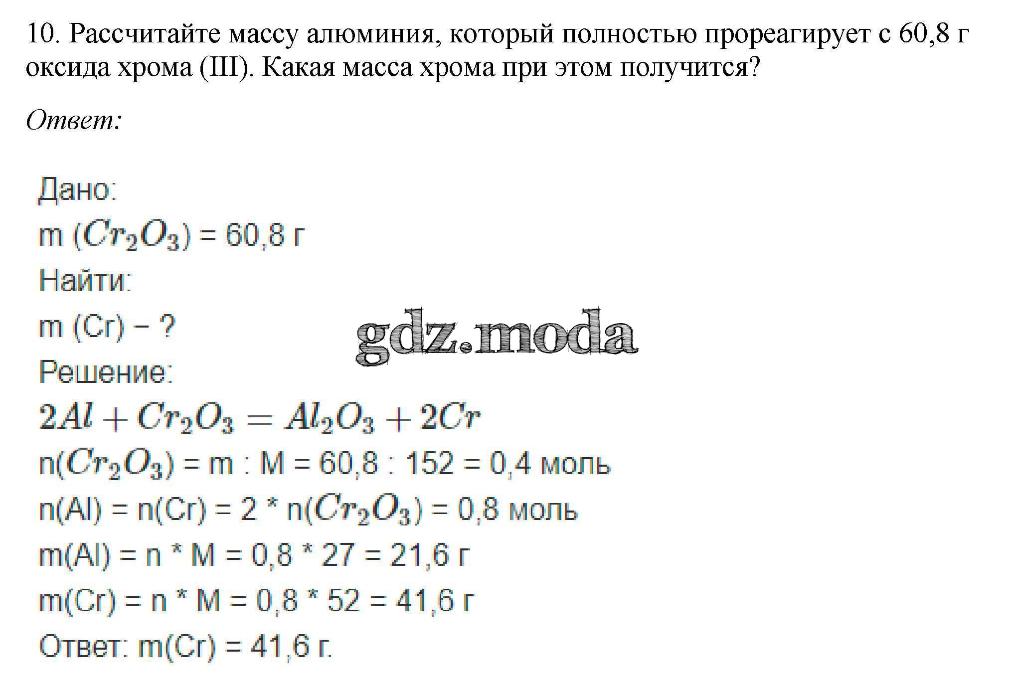 ГДЗ решение к заданию № 10 Химия 9 класс Габриелян О.С. Просвещение 2021 ФГОС бесплатно на гдз.мода!